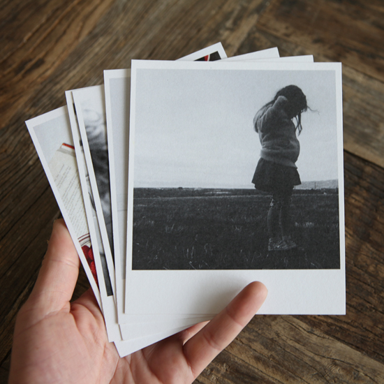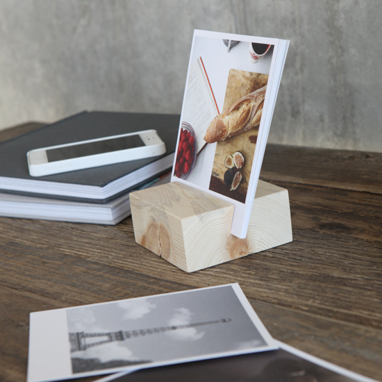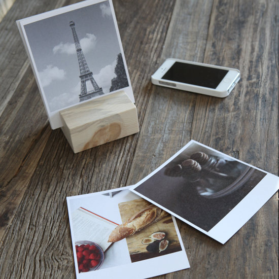 Give your desk some pretty with our Wood Block + Prints - a simple way to display your art. The wood block is scored with a slot to hold 12 of your favorite images upright as polaroid-shaped paper prints. Rotate them as the day sees fit.